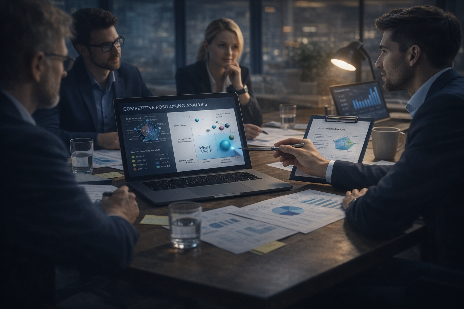 A top-tier global consulting firm needed to understand how competitors positioned themselves across thought leadership, employer branding, and digital presence, mapping 8+ firms across multiple dimensions to find defensible whitespace.